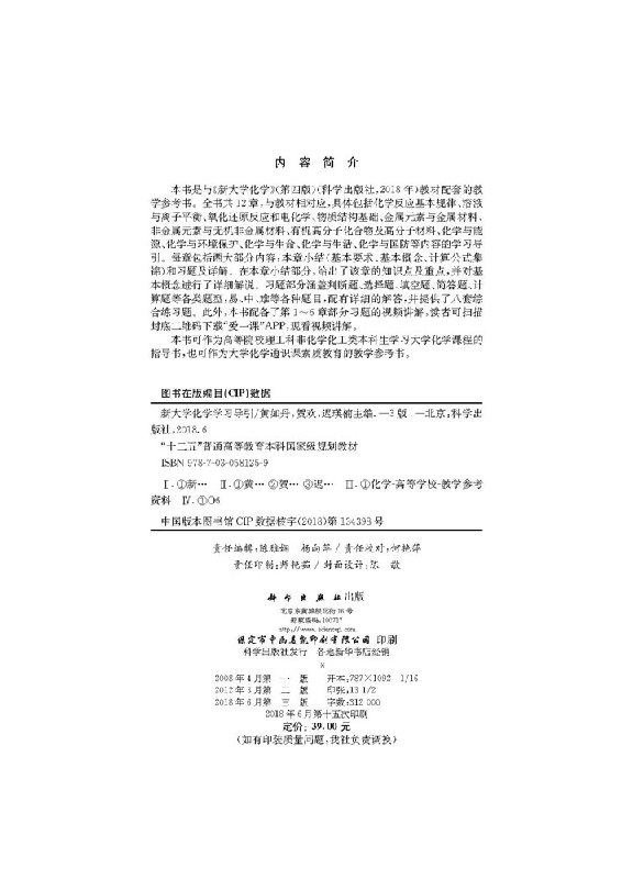 新书 社 新大学化学学习导引 科学出版 9787030581259 第三版 正版