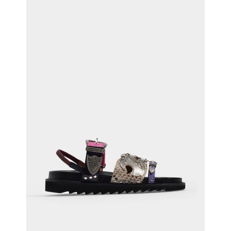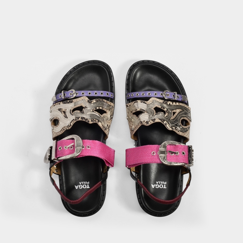 Pulla 平底拖鞋 白百何同款 金属系带蟒纹时尚 多带裹踝凉鞋 Toga