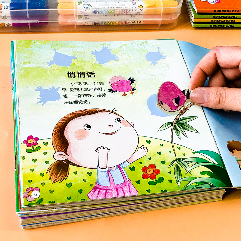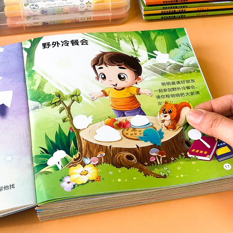 5岁男孩女孩子开心粘贴贴画书籍专注力训练贴纸书幼儿益智早教宝宝启蒙认知绘本婴幼儿园大中小班益智左右脑开发 6岁4 全套12册0