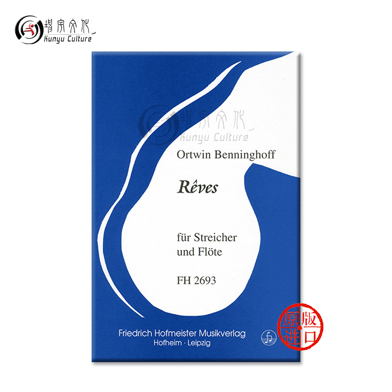 3Violins FH2693 原版 REVES for Benninghoff 德国霍夫曼斯特 乐谱书 Cello 本宁霍夫梦幻曲长笛三支小提琴和大提琴 Flute 总分谱
