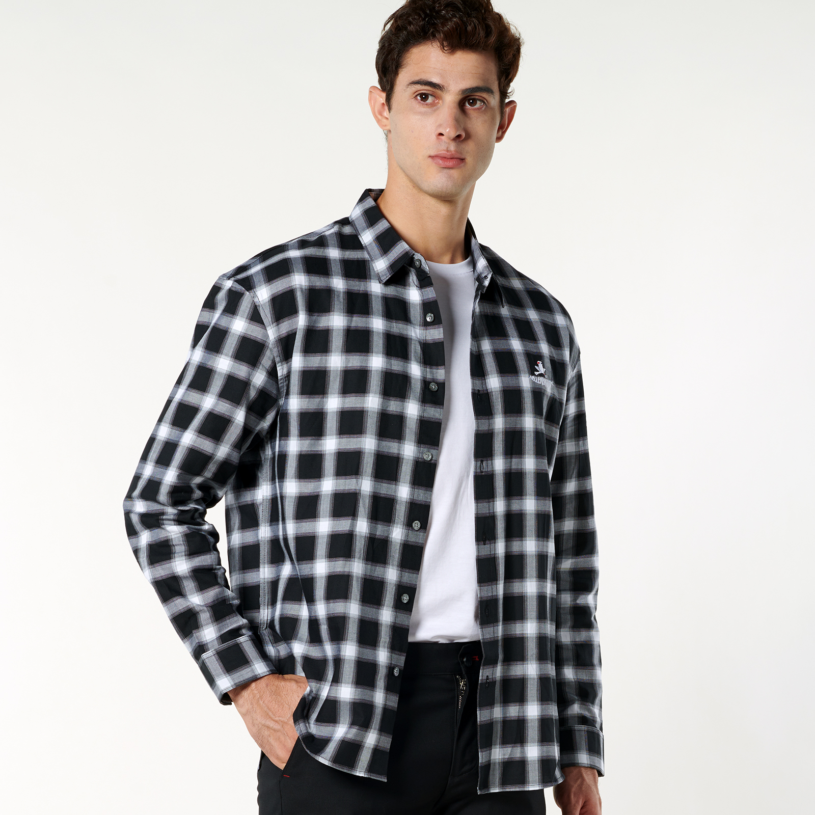 男款 班尼路S&K系列法兰绒衬衫 蓝色格子衫 新款 复古衬衣潮LF 男秋季