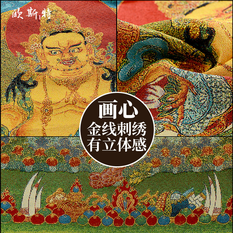 欧斯特刺绣唐卡黄财神壁画挂画客厅玄关装 裱画居家背景墙画像 饰装