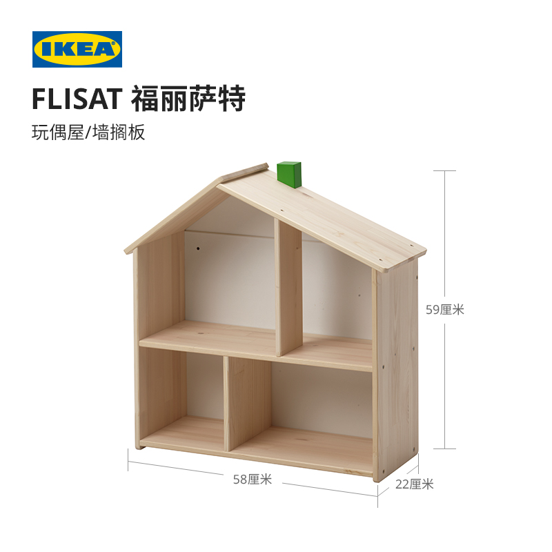 IKEA宜家FLISAT福丽萨特玩偶屋墙搁板实心松木收纳整理玩偶小房