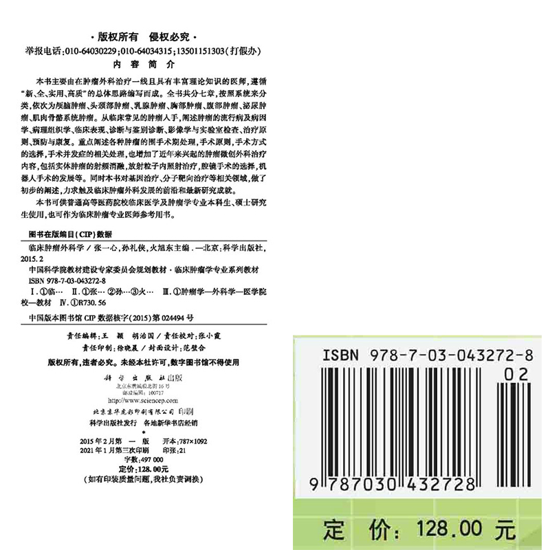 现货 社张一心孙礼侠火旭东9787030432728 临床肿瘤外科学中科院建设专家委员会规划教材临床肿瘤学专业系列教材科学出版