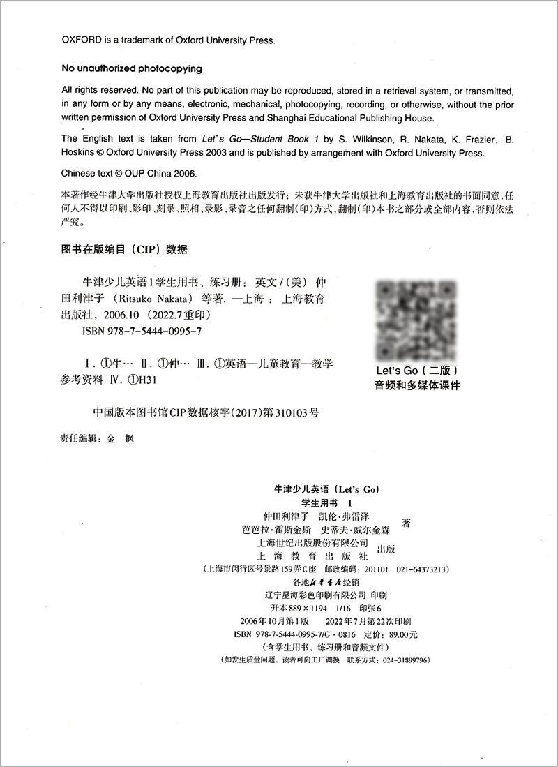 GO1 1册 牛津少儿英语 练习册 送PPT课件扫码 学生用书 音频 一级 牛津英语第二课堂培训教材系列 LET`S 扫码