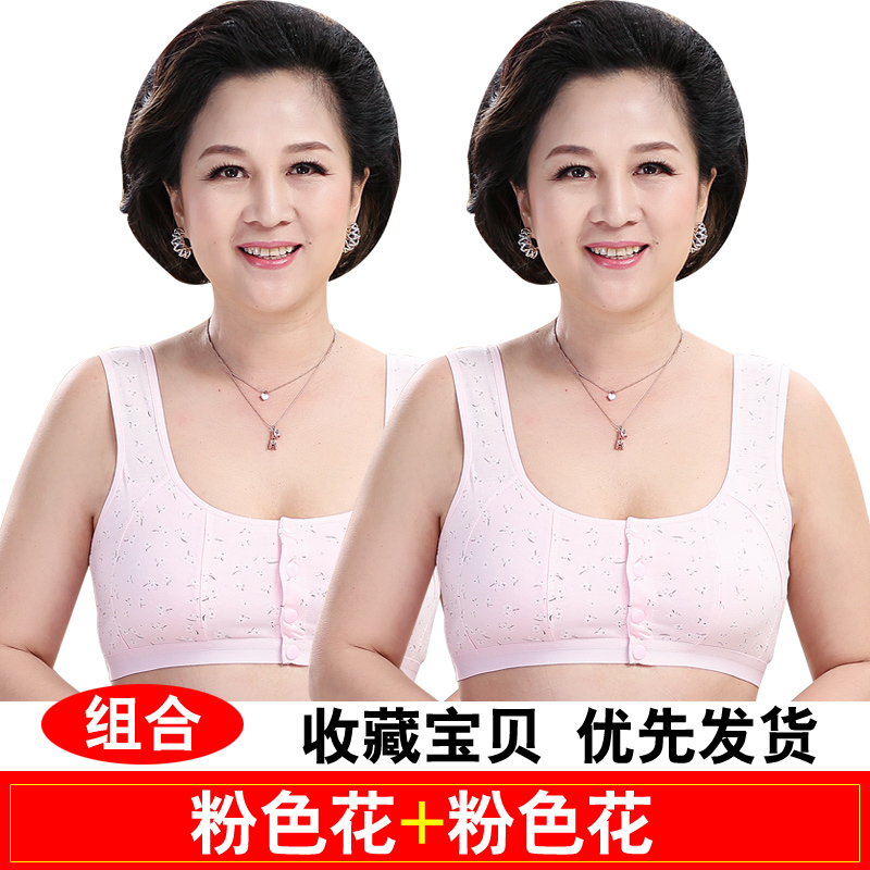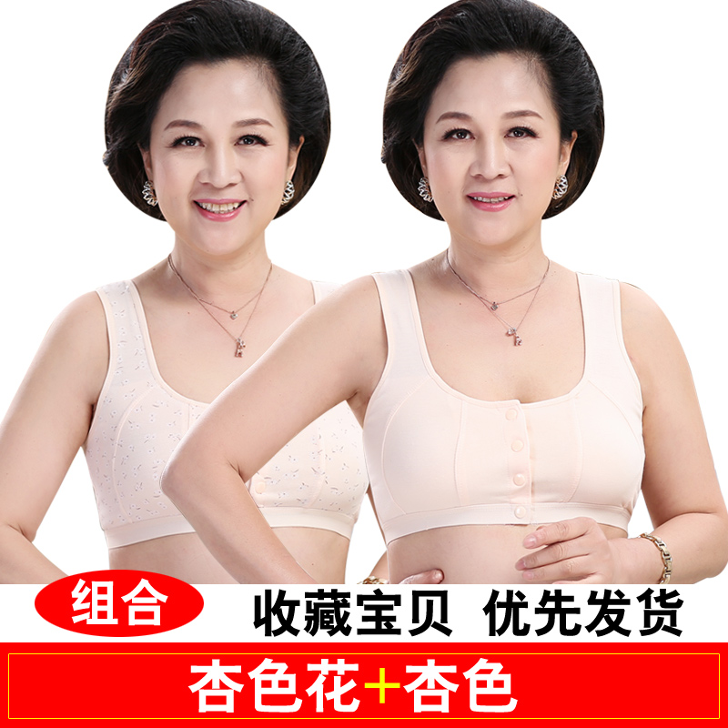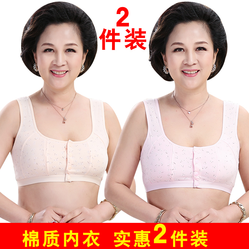 胸罩背心式 2件装 薄款 前扣式 文胸夏 中老年妈妈内衣棉质无钢圈女式