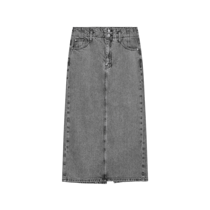 遮胯显瘦高腰长裙 中长款 飘蕾复古水泥灰牛仔半身裙2025夏季 新款