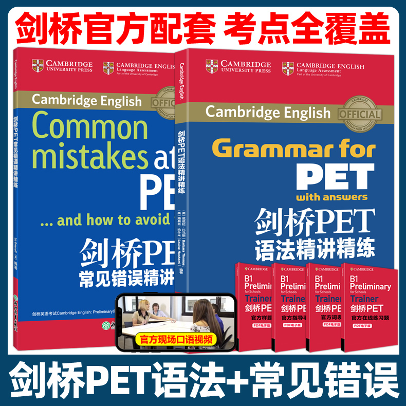 剑桥PET核心词汇语法常见错误精讲精练教材综合教程trainer官方真题单词书阅读听力原版 英语专项突破写作高分范文青少版