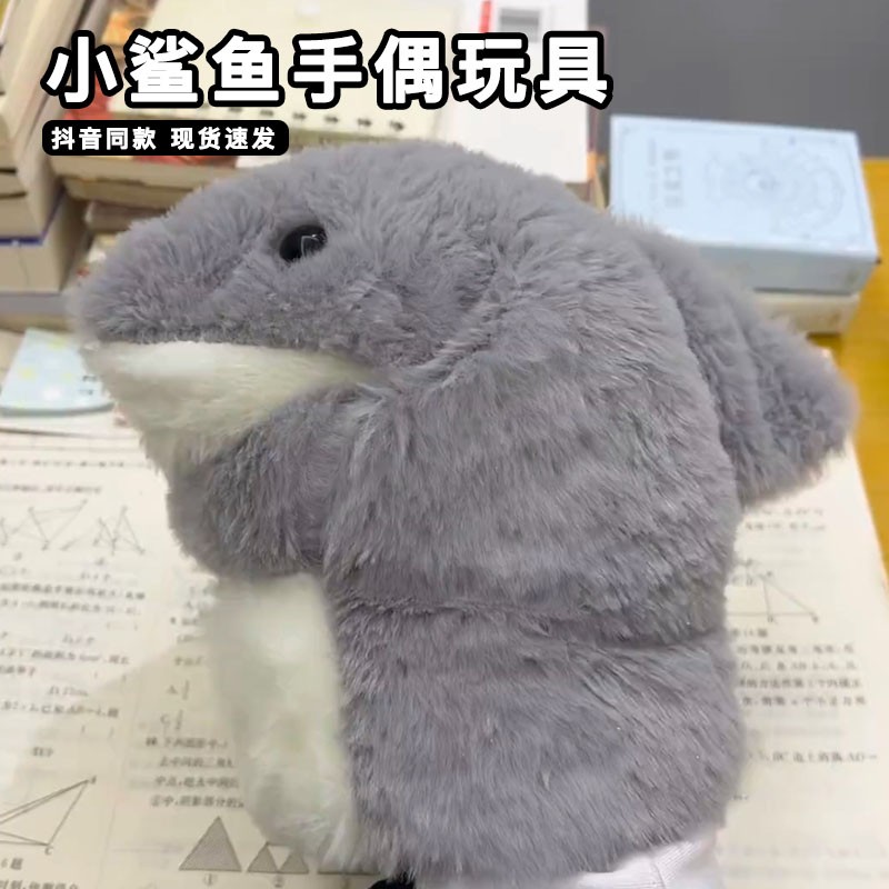 贪吃小鲨鱼手偶手套可张嘴 毛绒鲨手互动玩偶嘴巴会动玩具对战