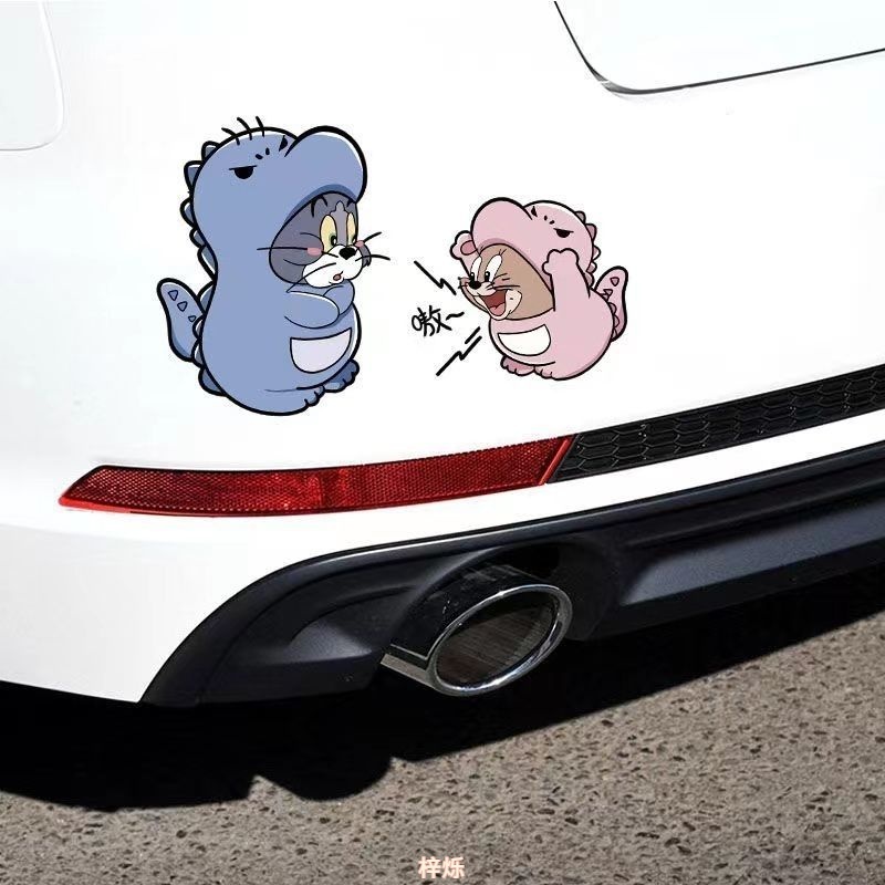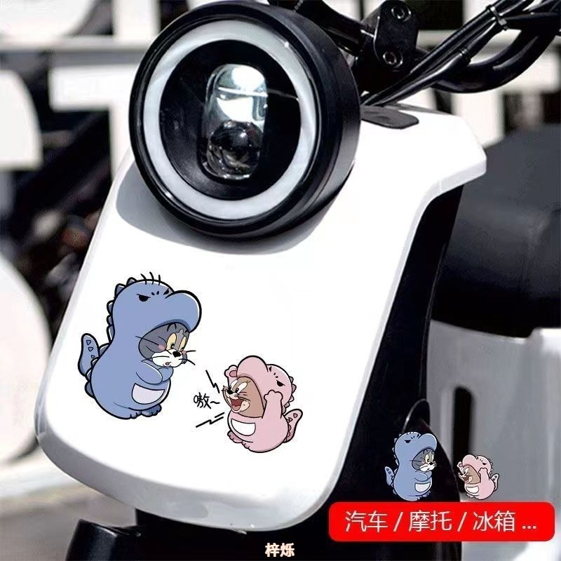 创意猫和老鼠卡通车贴电动车划痕遮挡防水贴纸潮流个性 饰贴画 装