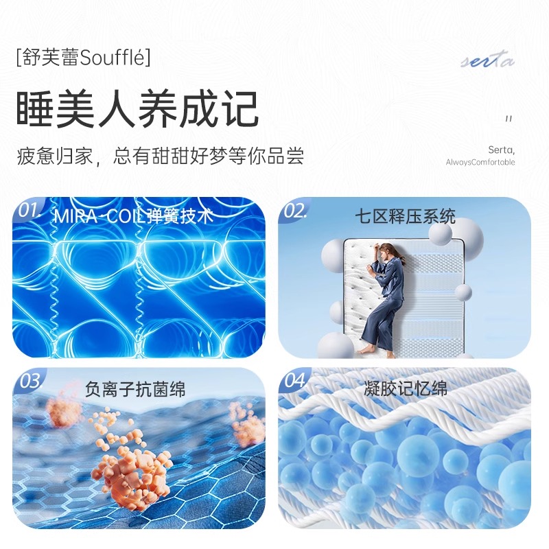 COIL弹簧床垫席梦思乳胶床垫1.8米双人床 舒芙蕾MIRA Serta 舒达