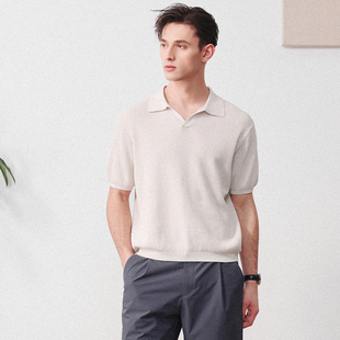 男商务休闲透气针织上衣 柏品12针棉麻提花海鸥领POLO衫 2025秋