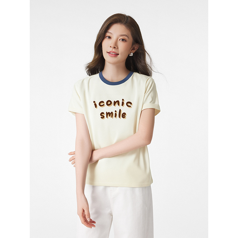 女士撞色宽松柔软棉T 新款 热风女士短袖 T恤字母印花棉T2025年夏季