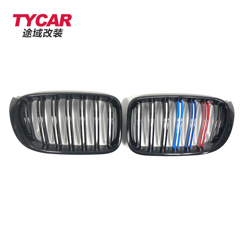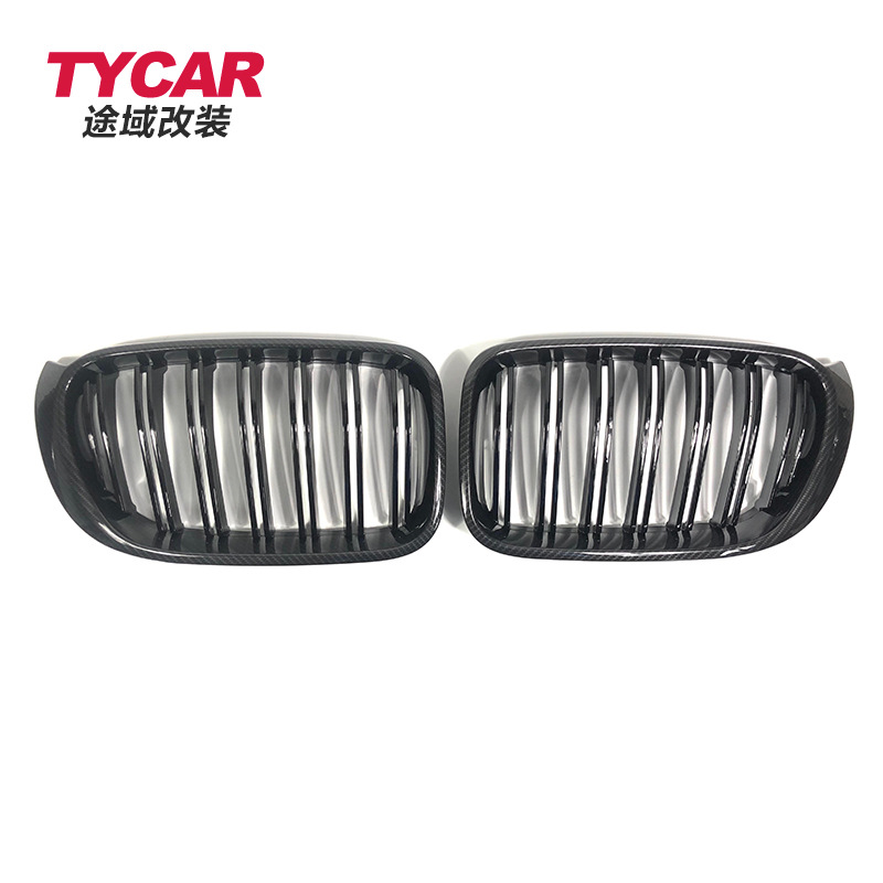 适用于宝马X3X4中网F25F26改装 双线亮黑三色双杠碳纤纹中网格栅