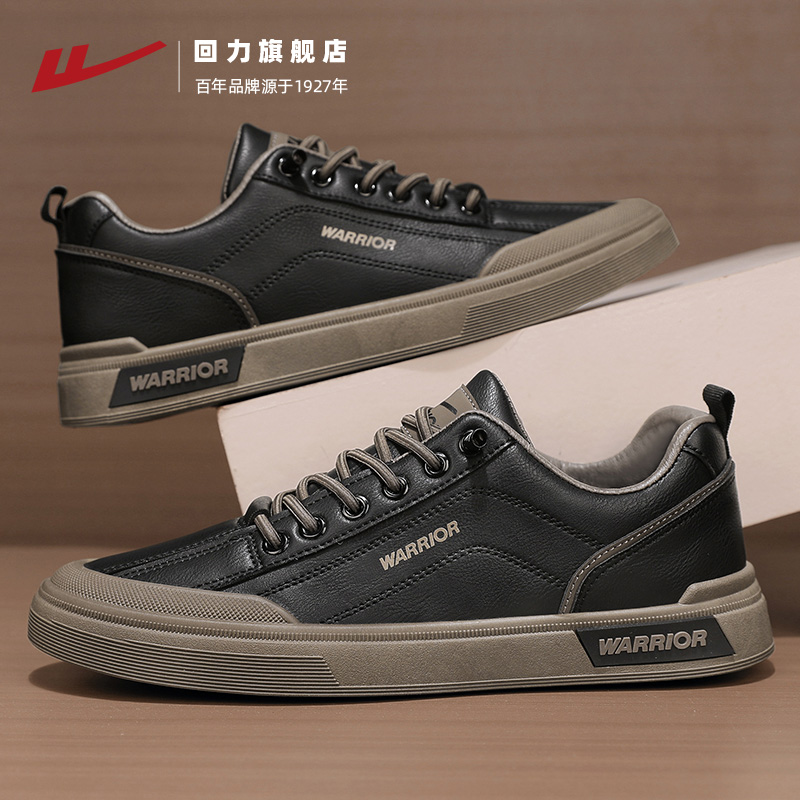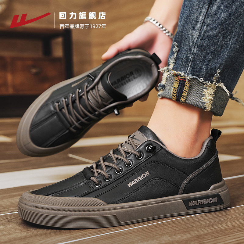 一脚蹬潮鞋 子男士 休闲皮鞋 回力男鞋 男款 2025新款 黑色运动板鞋 秋季