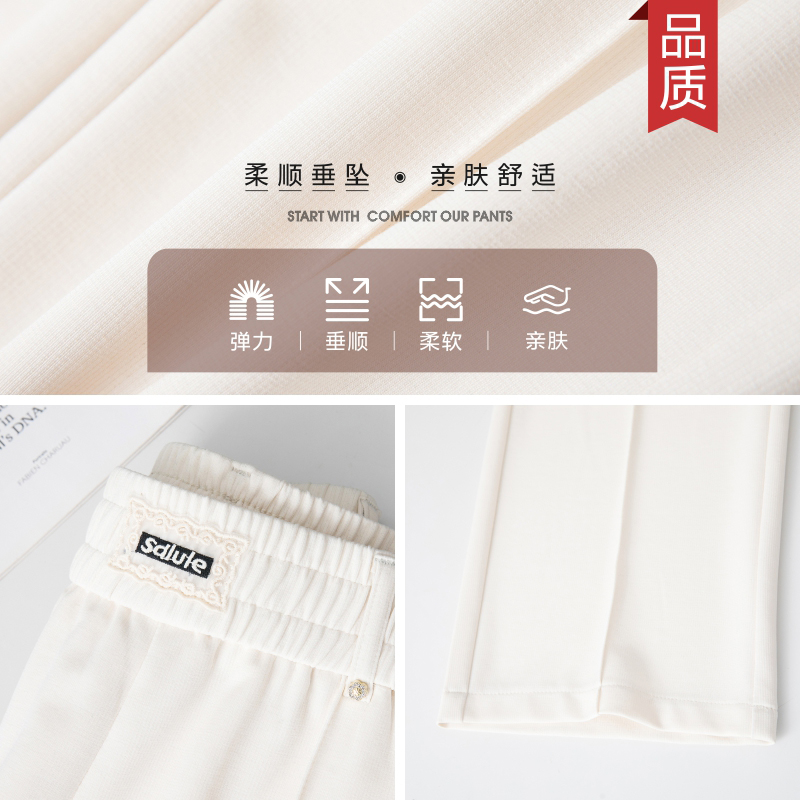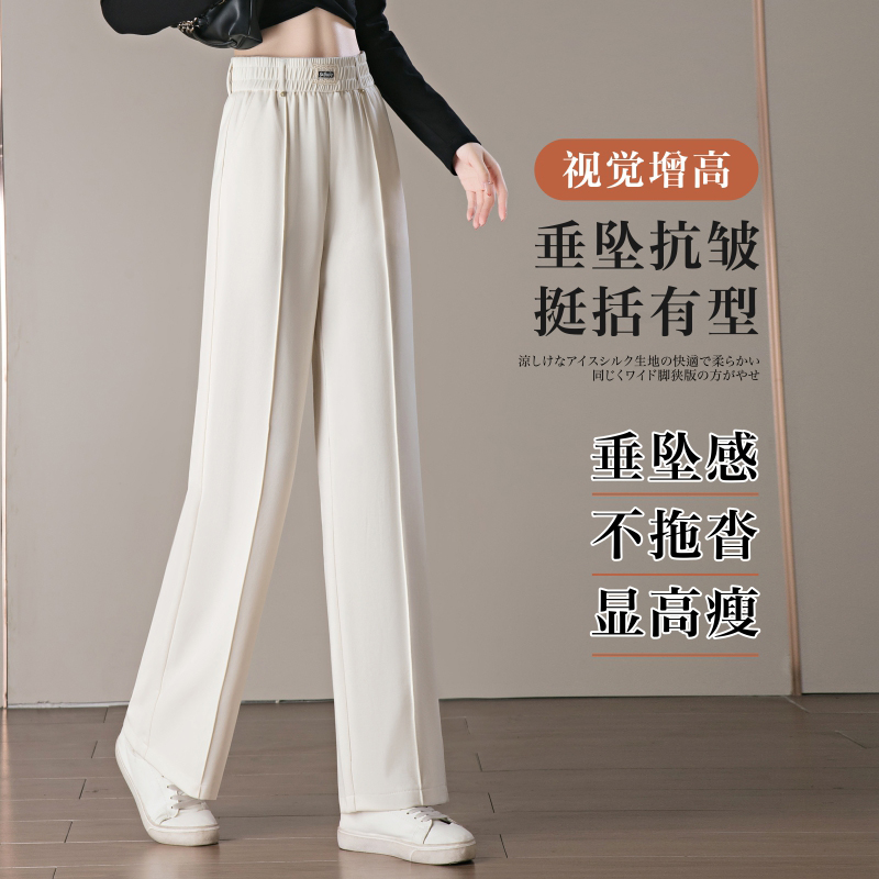 女2025新款 子垂坠感春夏直筒休闲裤 夏季 中年妈妈裤 薄款 白色阔腿裤