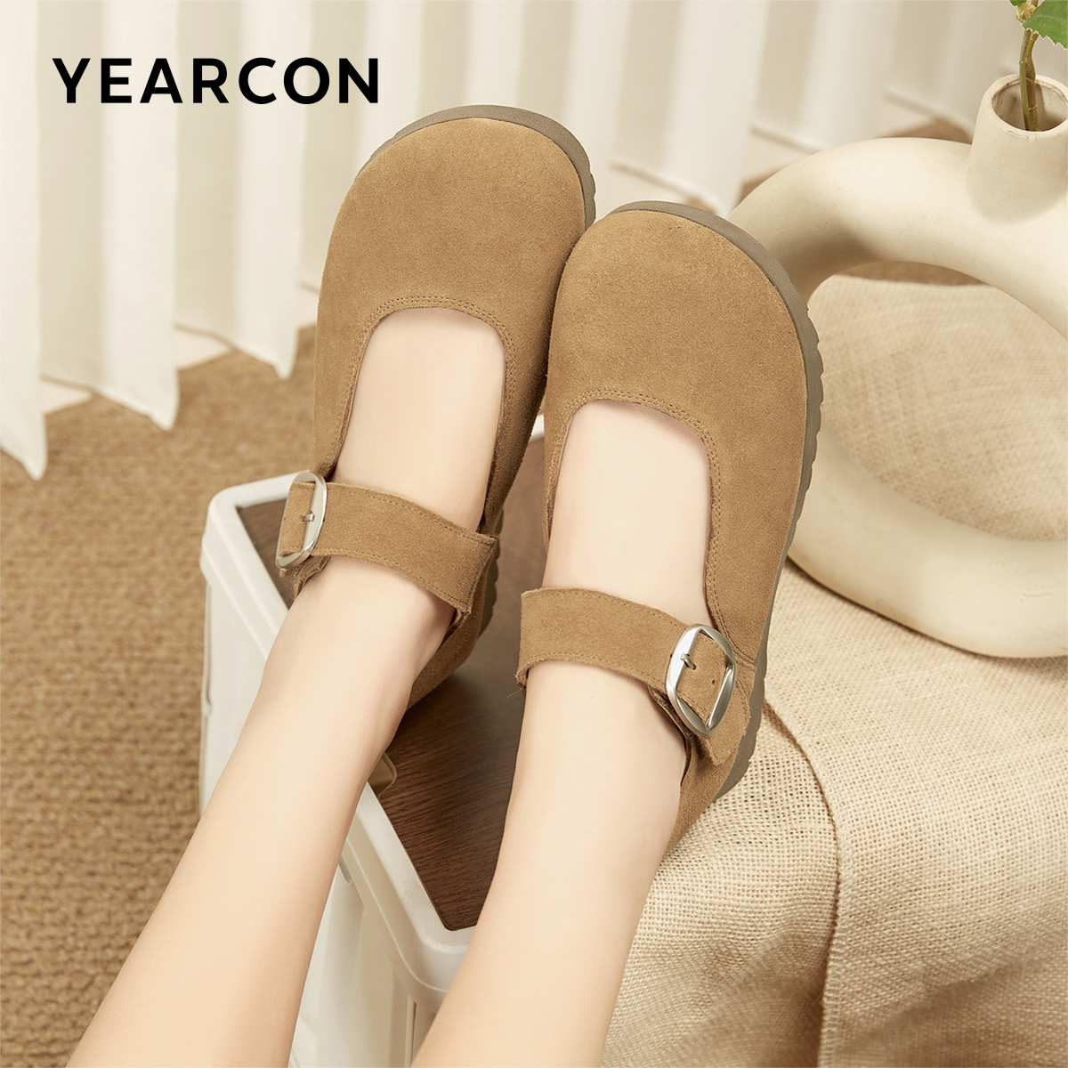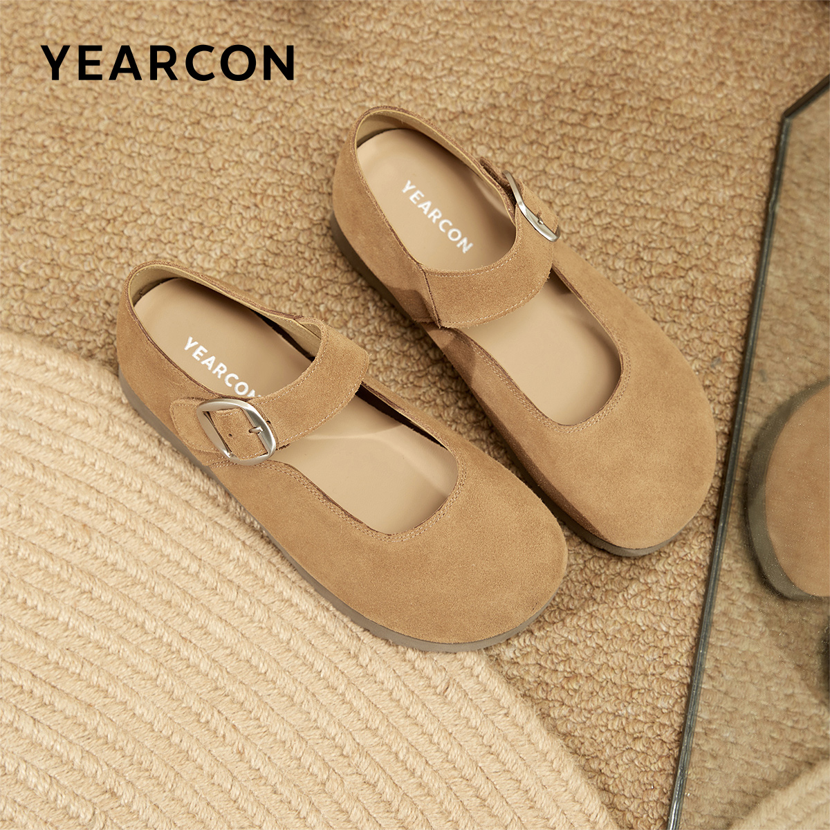女 羊皮芭蕾玛丽珍单鞋 董洁董璇小酒窝同款 真美诗摩卡慕斯25秋新款
