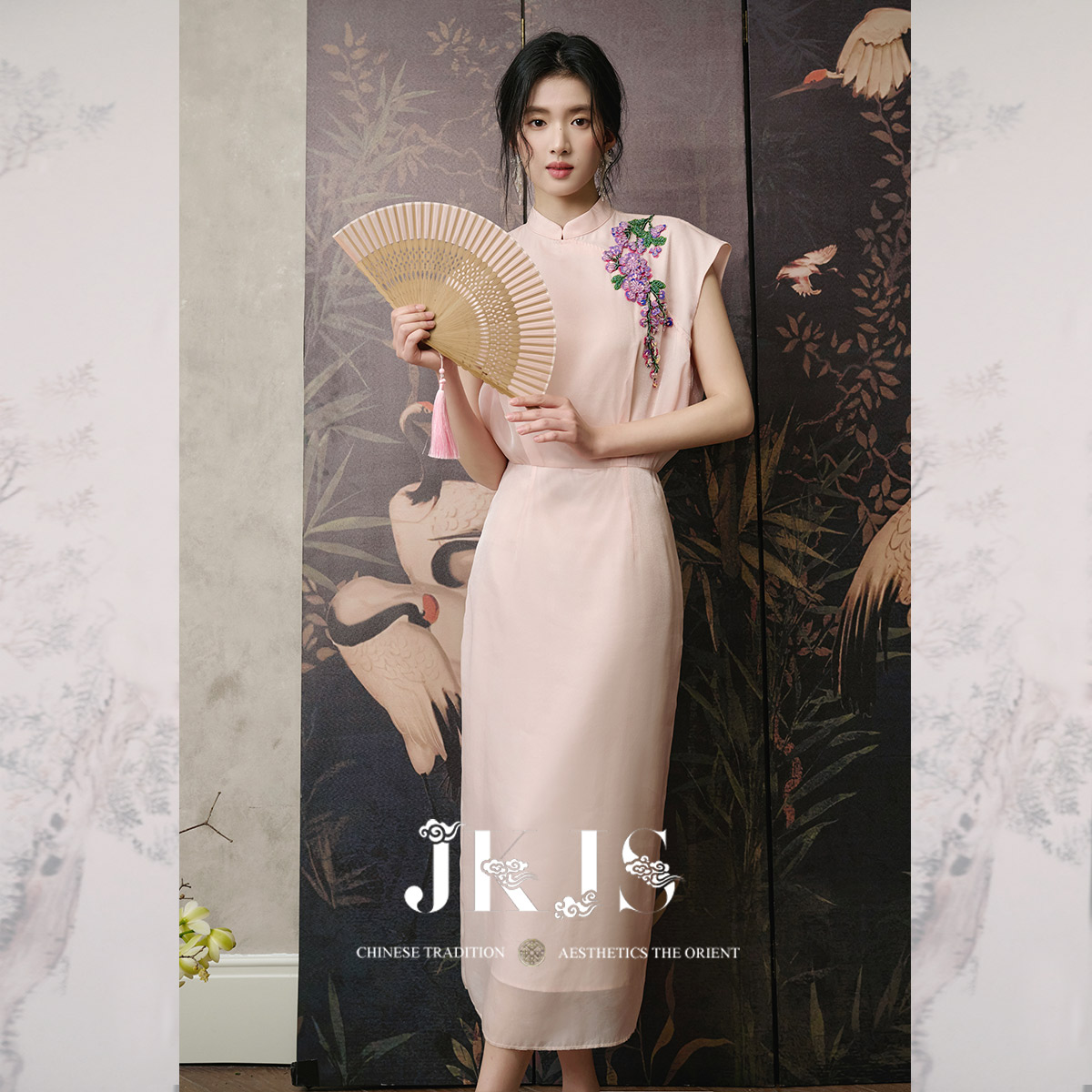 国风开叉包臀裙 改良旗袍植绒连衣裙女25年夏季 XZY 微胖优雅新中式