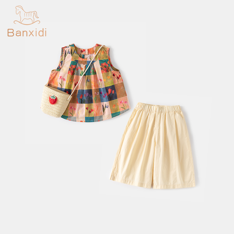 夏装 裤 2025新款 上衣薄款 子儿童衣服 时髦女宝宝无袖 班喜迪女童套装
