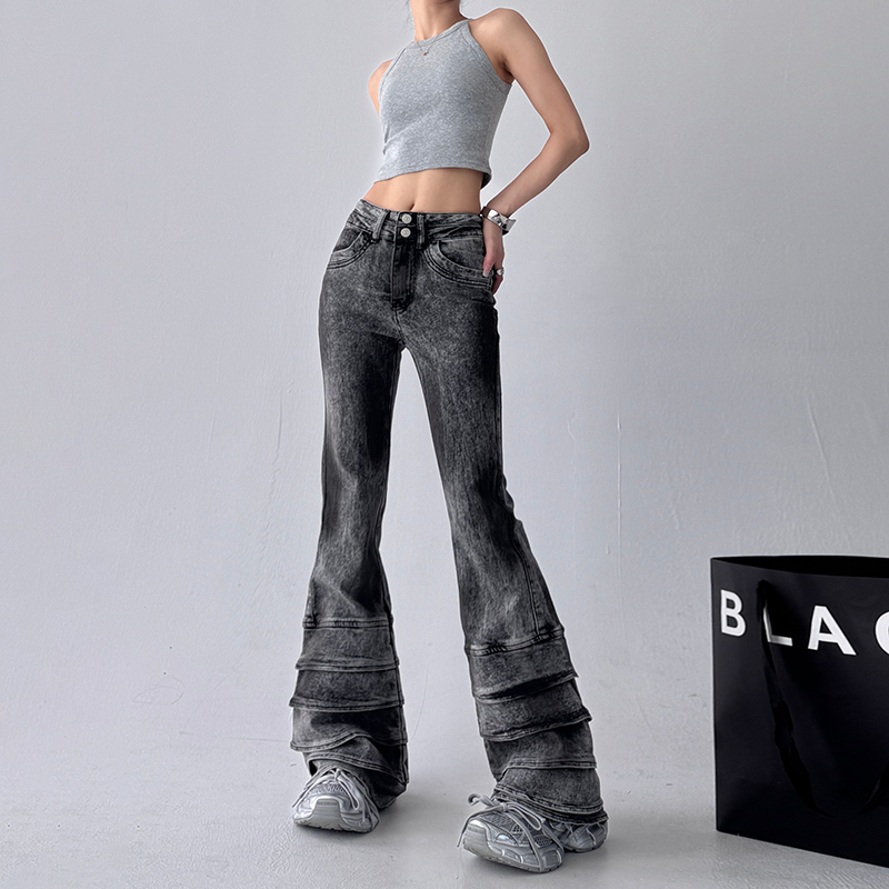 显瘦低腰别致黑色微喇裤 修身 子 女2025春夏新款 复古做旧水洗牛仔裤