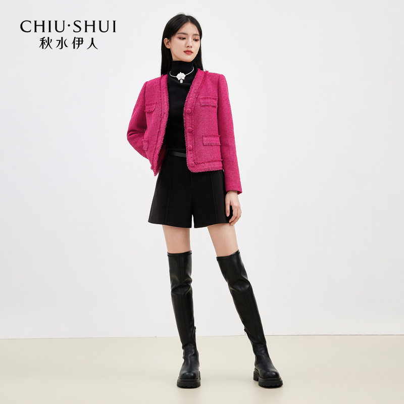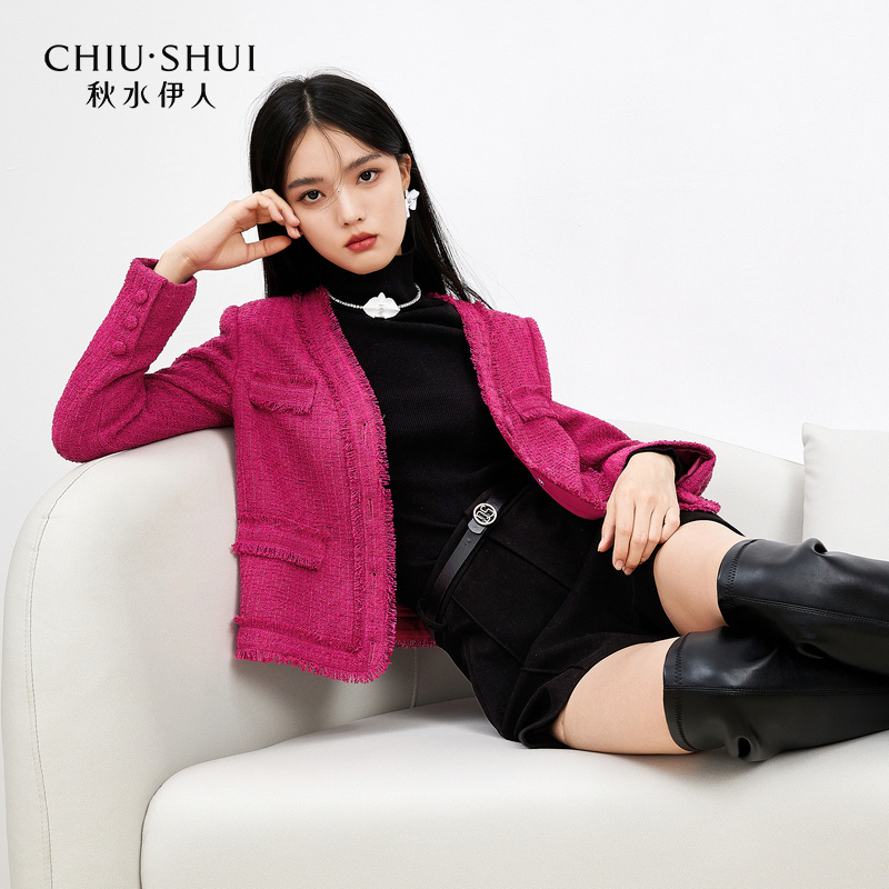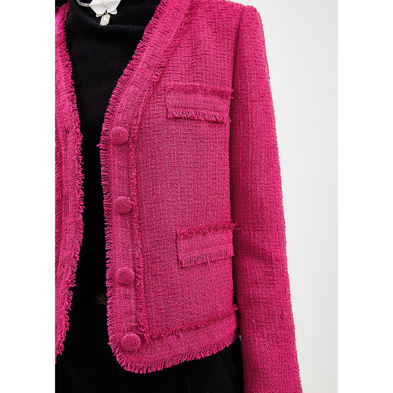 外套 长袖 秋水伊人奥莱优雅小香风简约上衣2025春装 女V领纯色短款