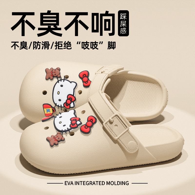女夏天 室内家居防滑厚底外穿踩屎感包头凉鞋 凯蒂猫洞洞鞋 女士夏季