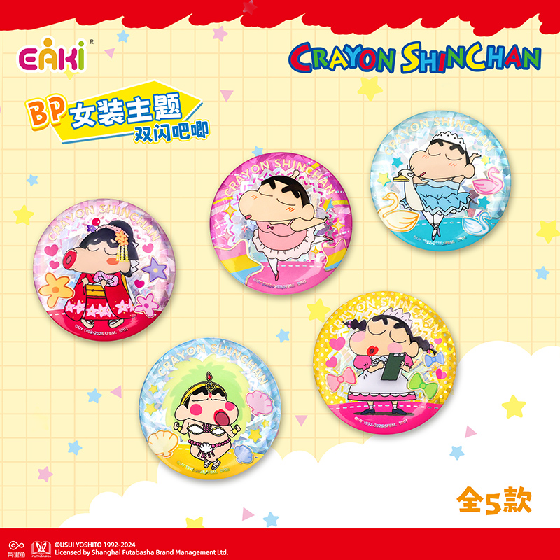 蜡笔小新吧唧百变刺绣双闪限定画布徽章盲盒收藏官谷正版 周边配饰