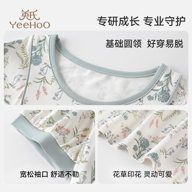 公主风2025新款 英氏儿童连衣裙夏季 宽松中长款 韩版 家居裙 女孩短袖