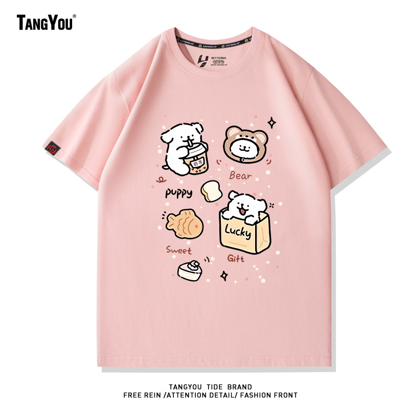 卡通韩系上衣可爱休闲马尔济斯小狗趣味印花短袖 休闲t恤夏 情侣装