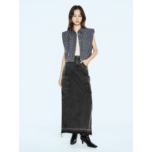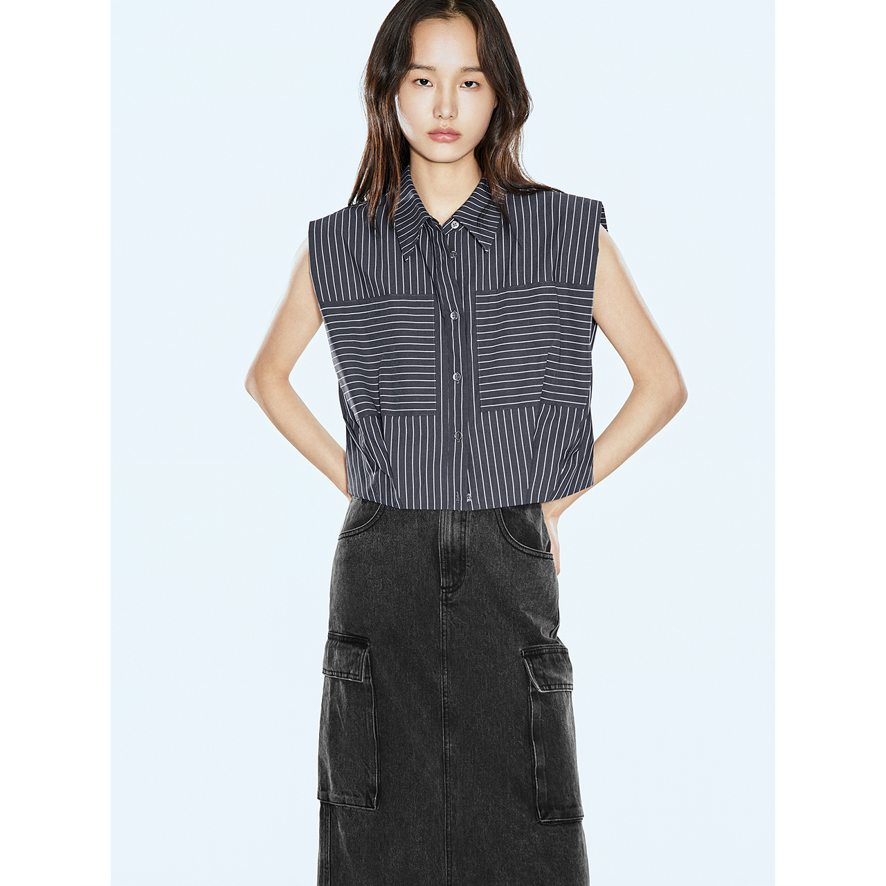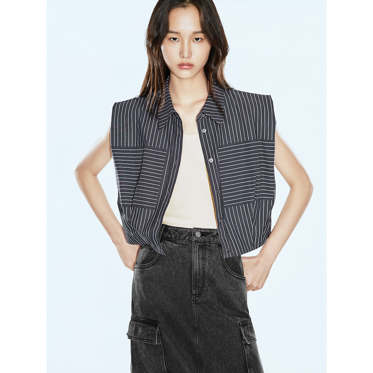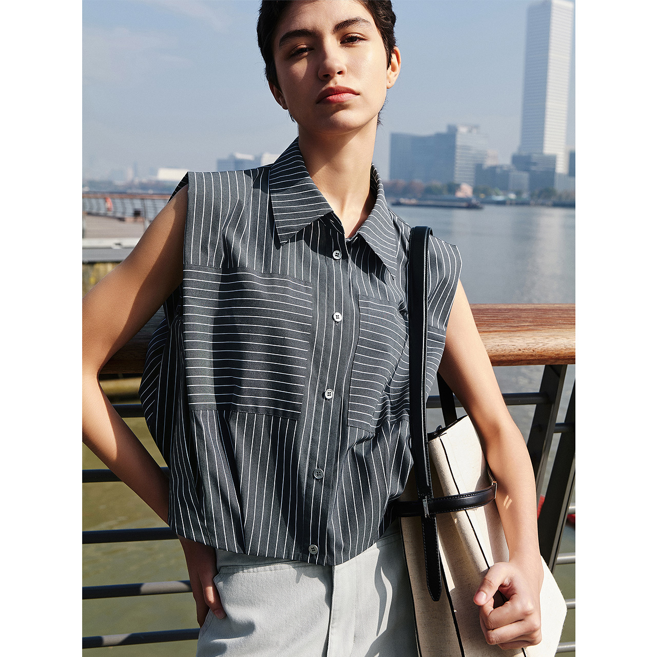 衬衫 时髦截短色织条纹无袖 上衣女 新款 COVERINS2025夏季