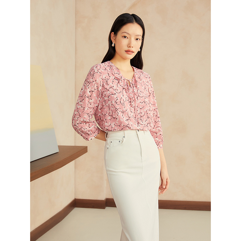 牛仔衬衫 设计师款 荷叶边宽松翻领长袖 秋冬新款 18345222 佐丹奴女装