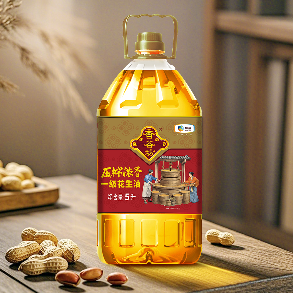 中粮香谷坊压榨浓香一级花生油5L家用厨房烹饪炒菜煎炸凉拌家庭装