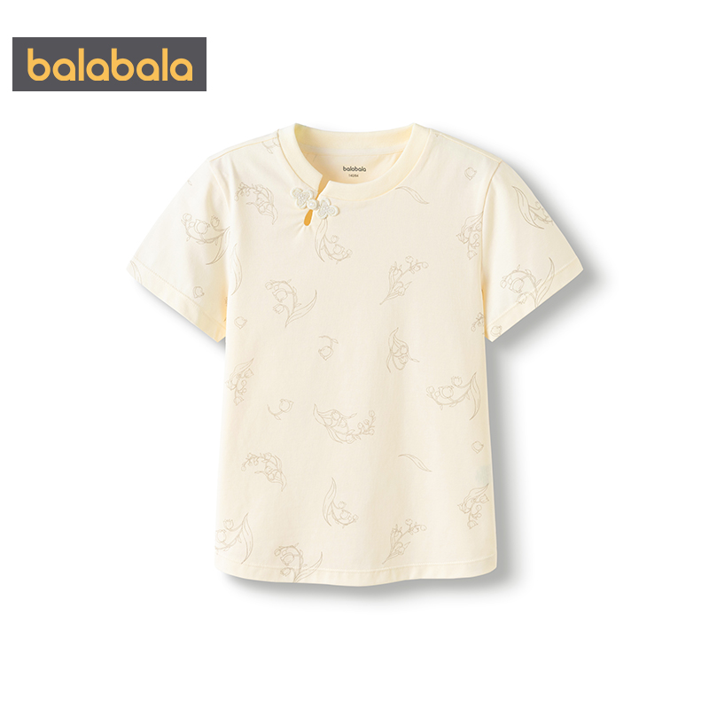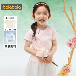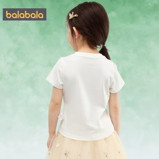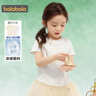 薄 儿童洋气国风打底衫 巴拉巴女童短袖 t恤中大童宝宝白色上衣夏季