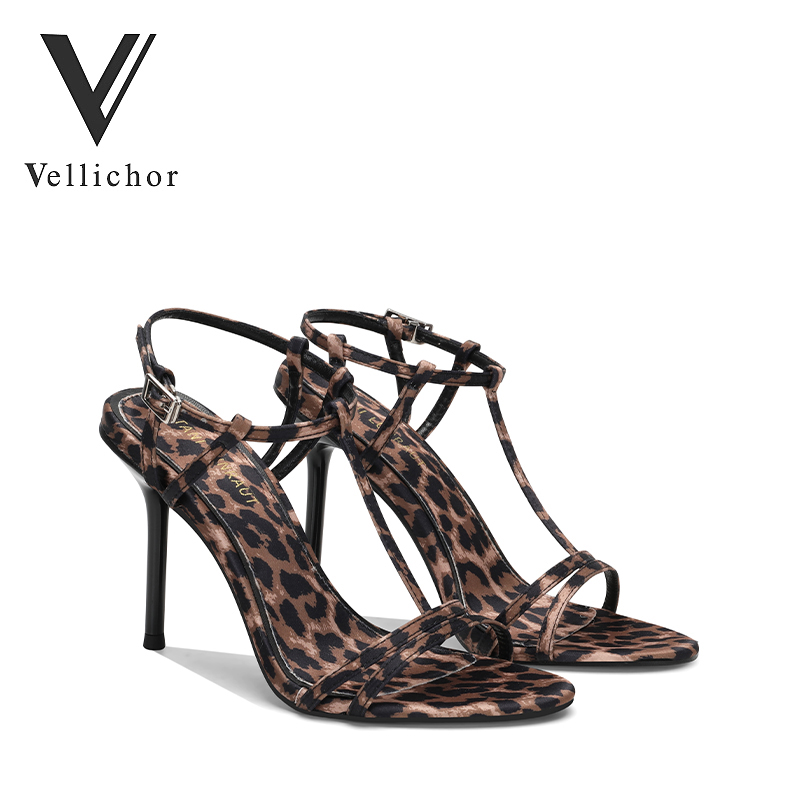 女一字扣交叉绑带气质名媛细跟露趾凉鞋 2025年新款 性感豹纹高跟鞋