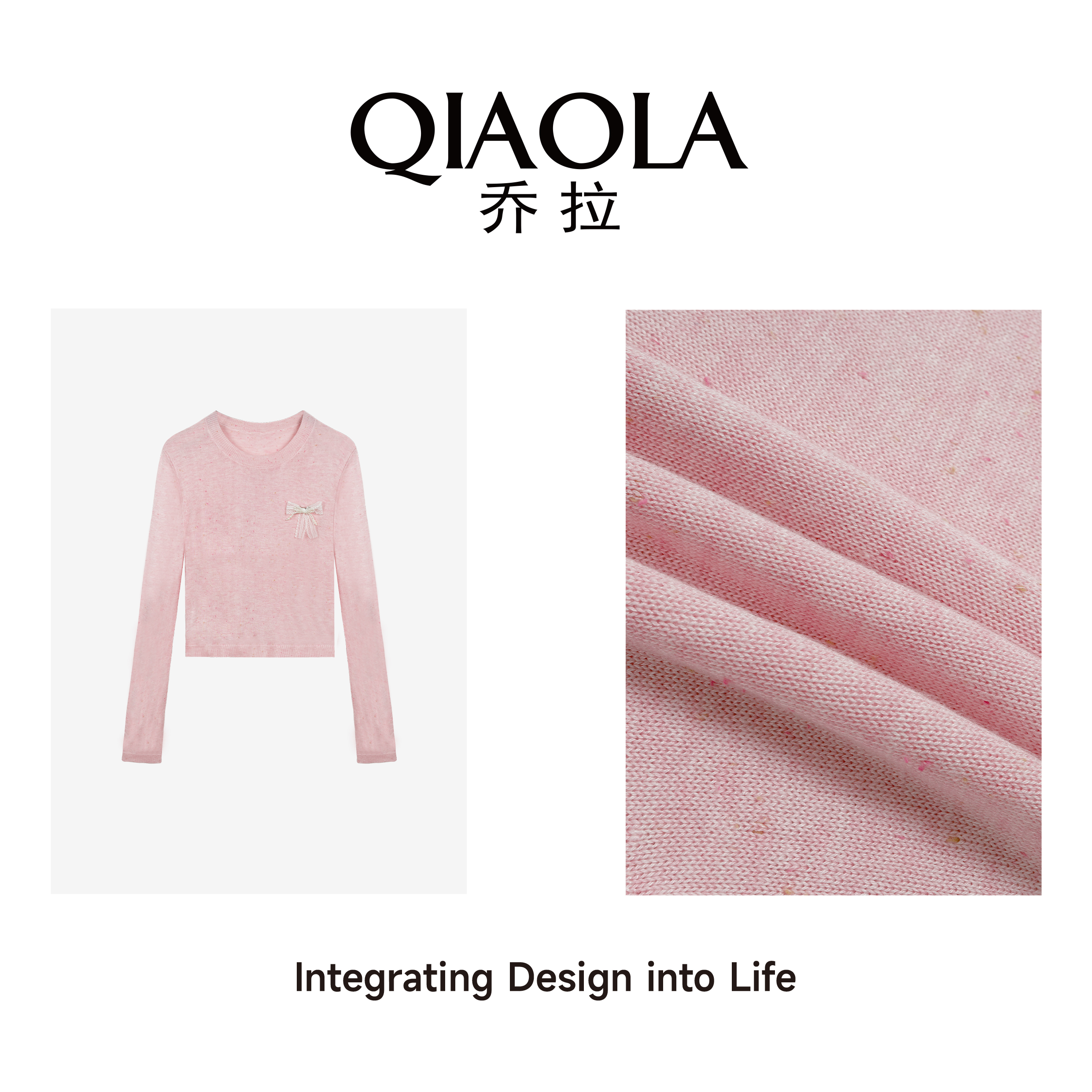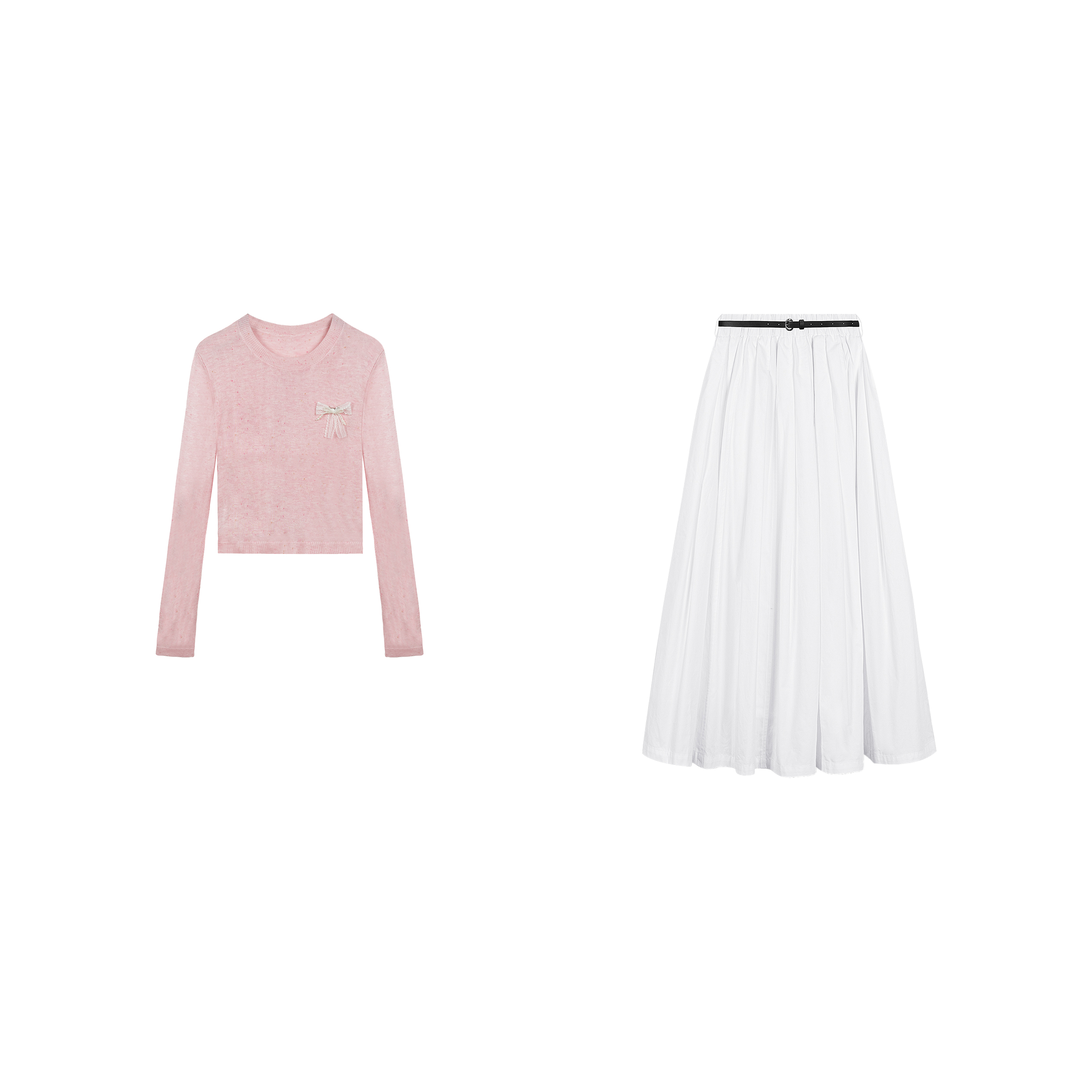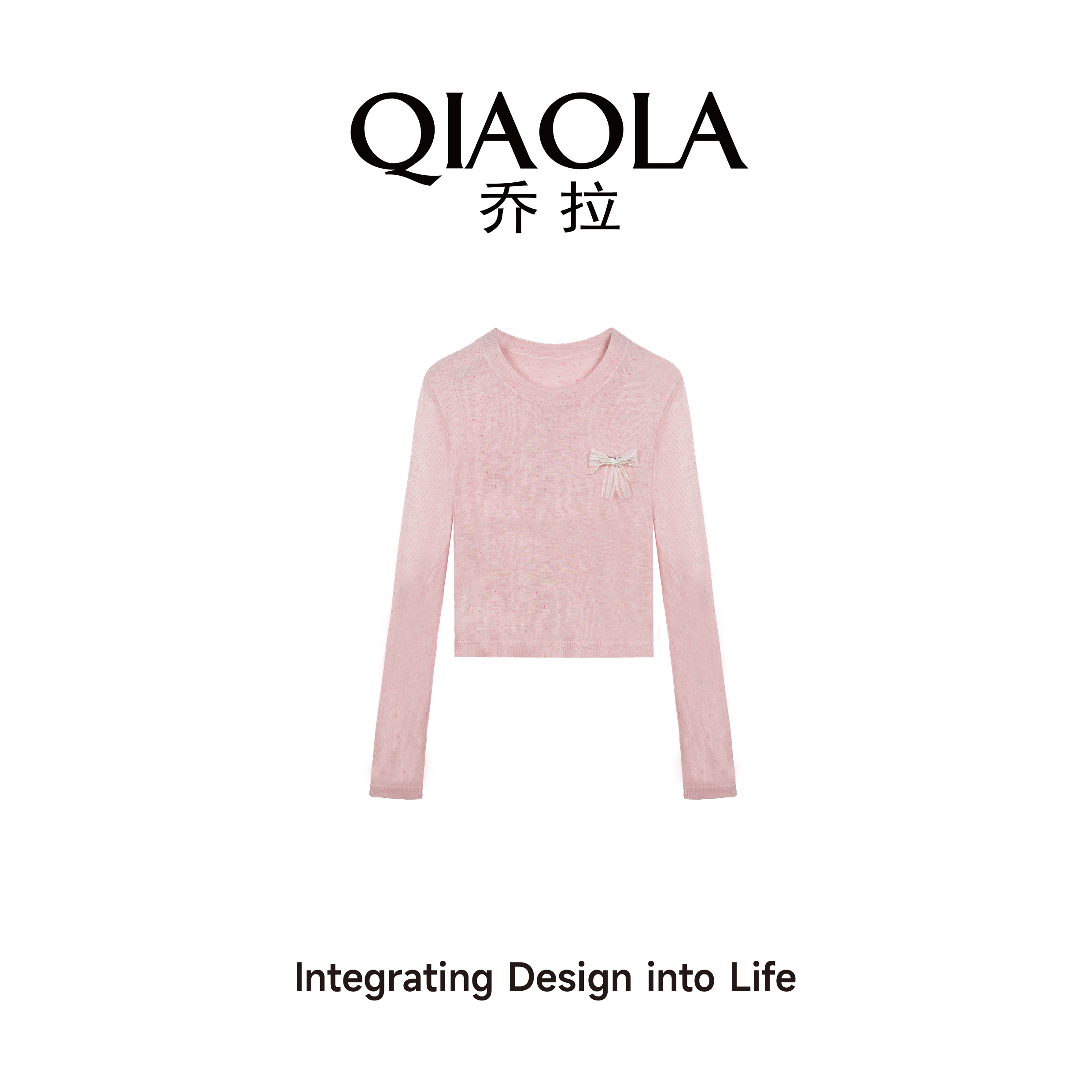 打底上衣女气质显瘦半身裙套装 粉色网纱圆领长袖 糖心蔷薇 乔拉