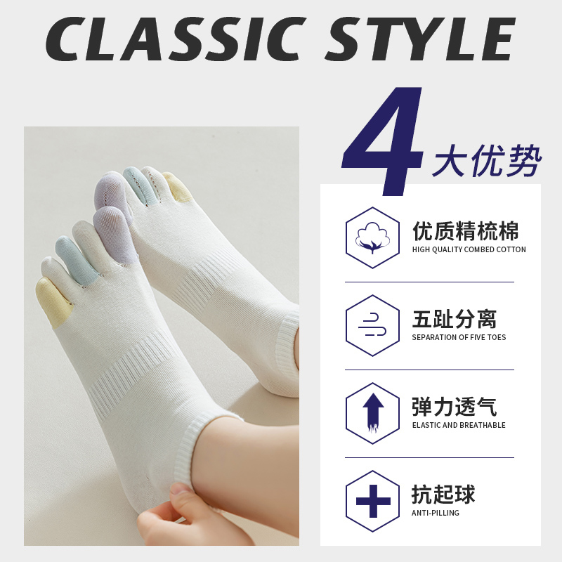 五指袜女士纯棉夏季 短袜抗菌防臭运动吸汗脚趾袜女分趾无骨袜春秋