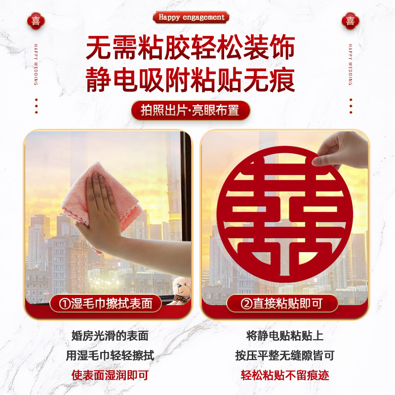 喜字结婚专用静电贴窗户玻璃囍字贴婚礼婚房布置婚车装 饰窗花囍字