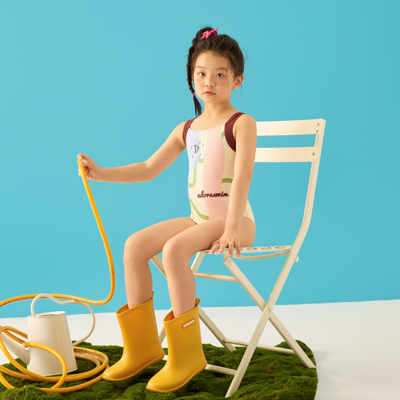 女童泳装 爱多尔洋气女孩游泳衣夏 连体吊带设计高级感泳衣2025新款