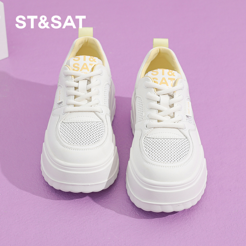 百搭增高休闲休闲单网鞋 星期六真皮6CM厚底小白鞋 女2025夏秋新款