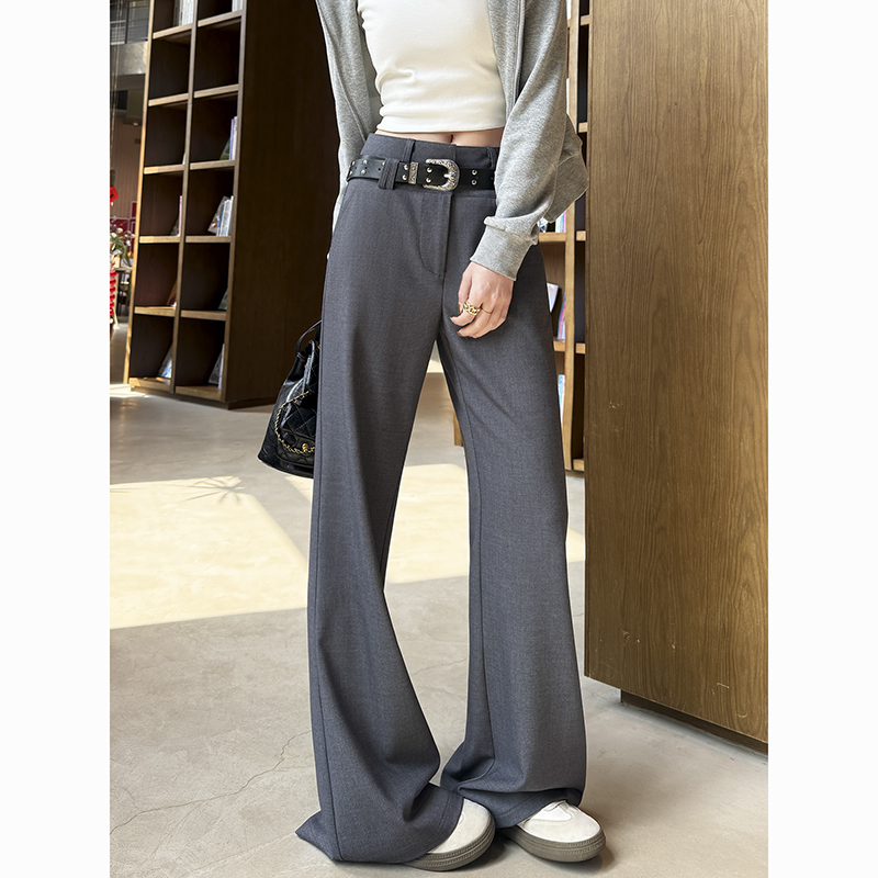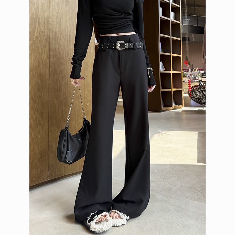 女春秋新款 微喇裤 天丝醋酸西装 裤 黑色美式 复古显瘦休闲拖地裤 西装