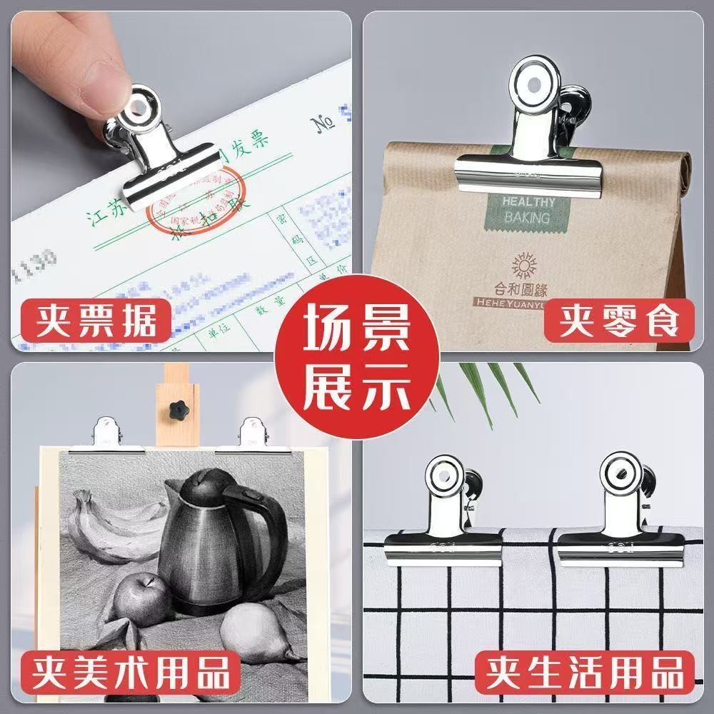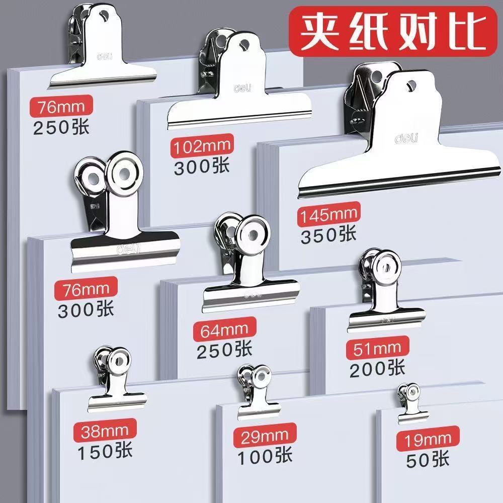 得力夹子文具大全固定山形夹不锈钢铁票据夹画板特大号小号书小夹子文件家用多功能强力金属凭证票夹办公用品