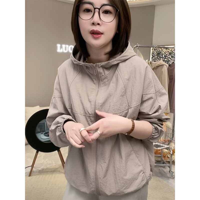 纯色减龄百搭防晒连帽外套女2025春秋季 宽松休闲显瘦百搭上衣 新款
