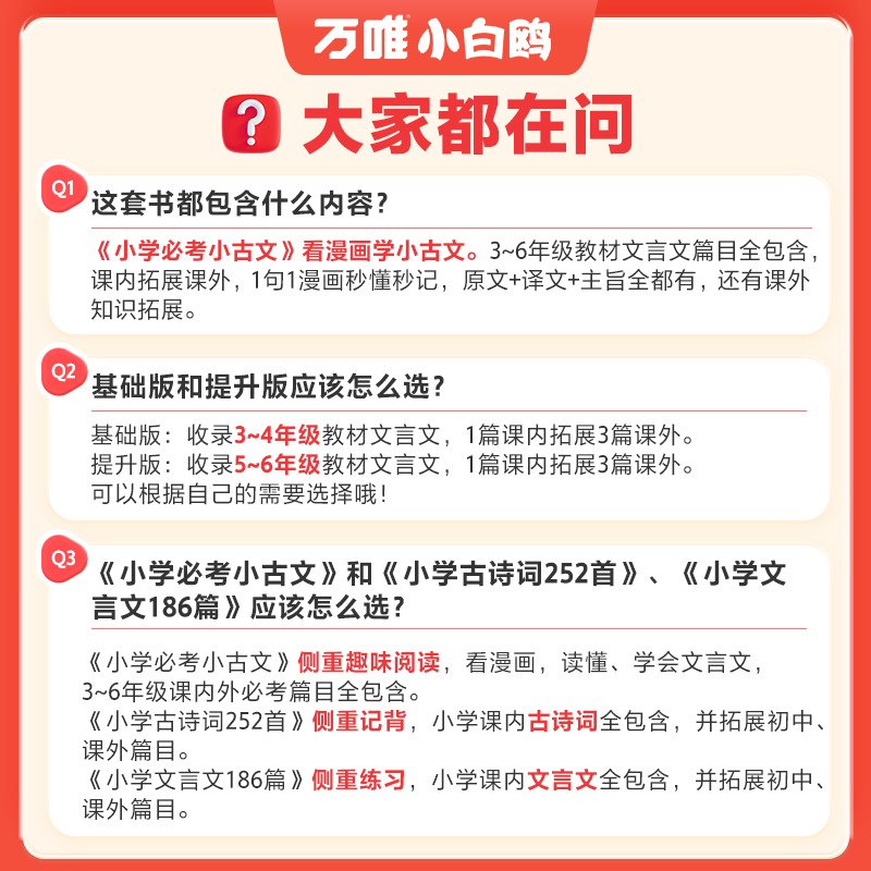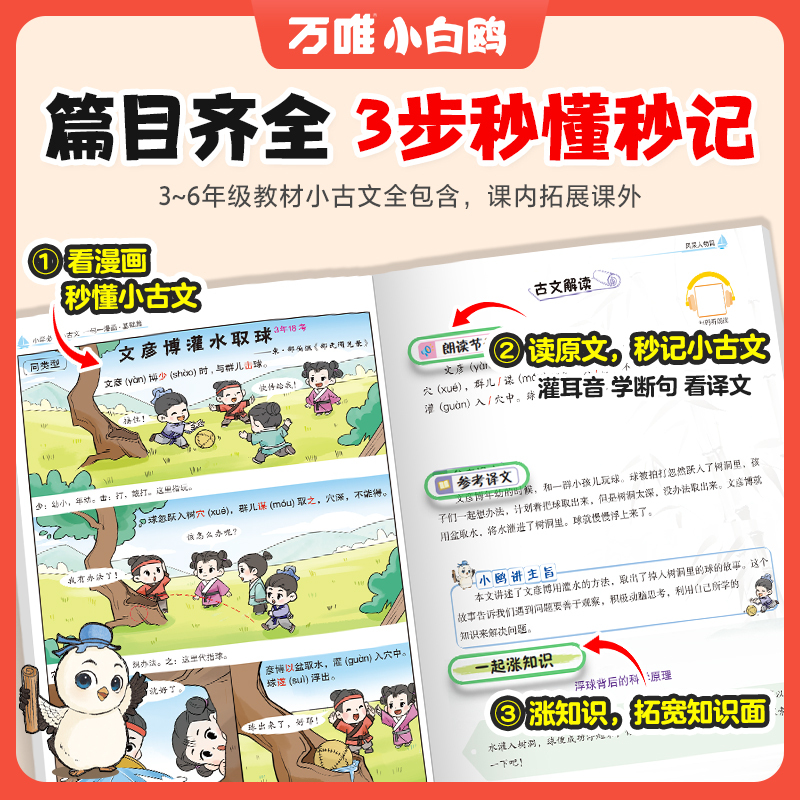 2025万唯小白鸥小学必考小古文漫画三四五六3456年级上下册人教版 语文小学生必背古诗走进爆笑每日一篇小古文阅读文言文
