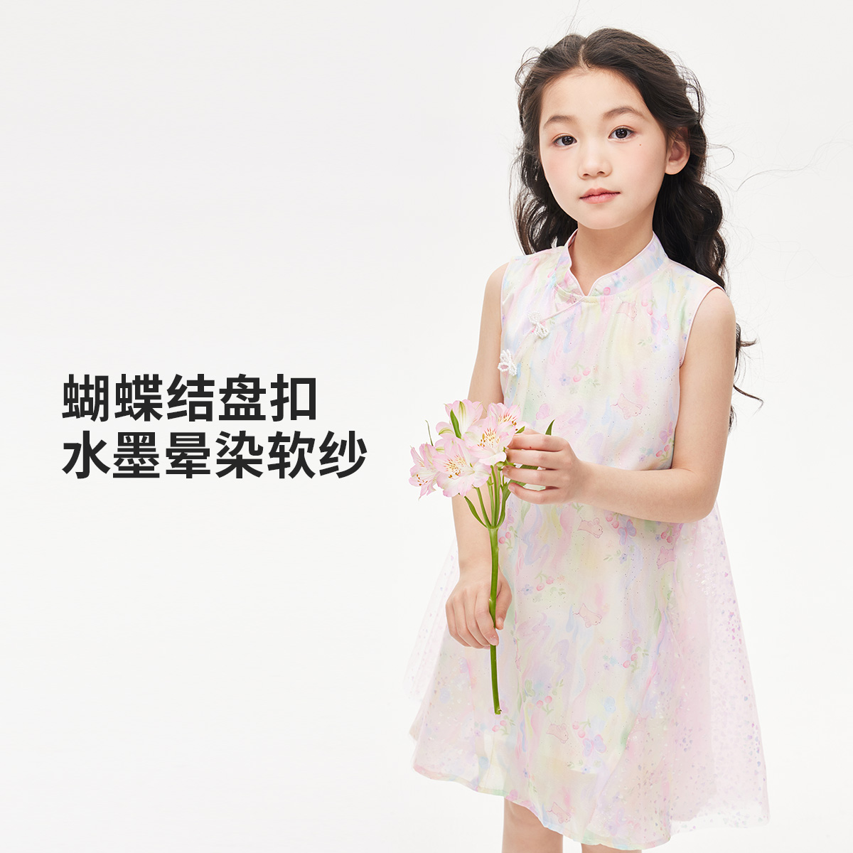 裙子女 国风盘扣长裙洋气国风夏装 皇室童缘女童连衣裙2025夏季 新款