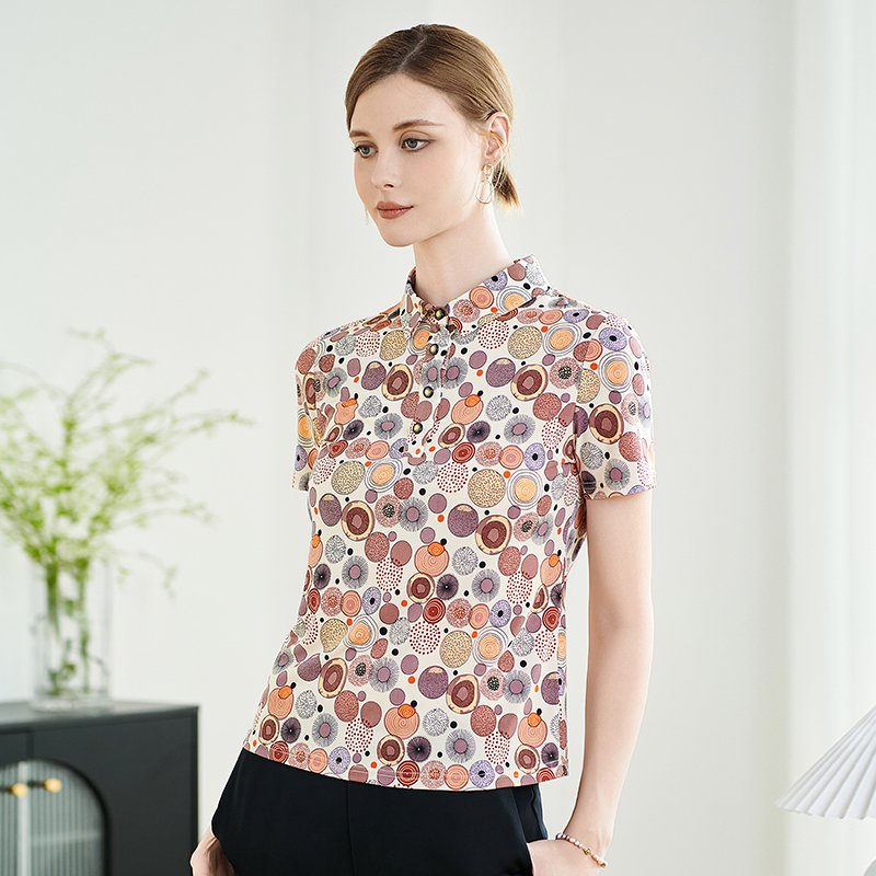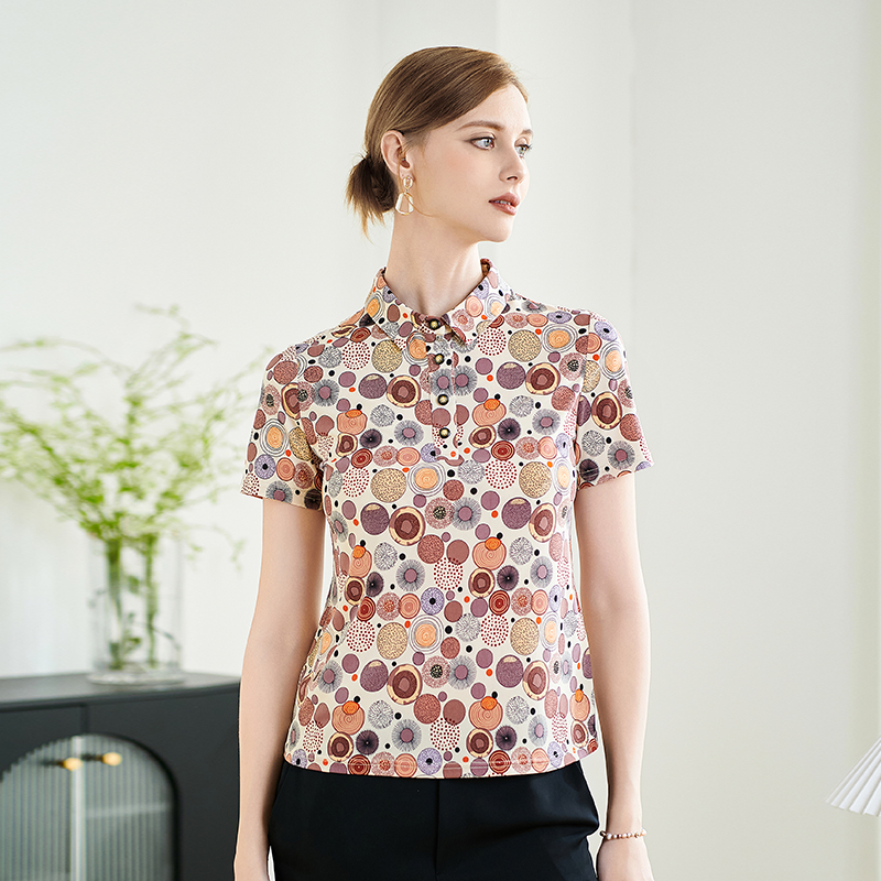 衬衫 短袖 香沐兰印花POLO领时尚 女中老年妈妈百搭小衫 缤纷夏日