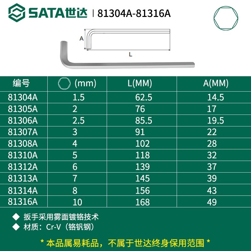 世达超硬内六角扳手单个1.5 2.5 17mm