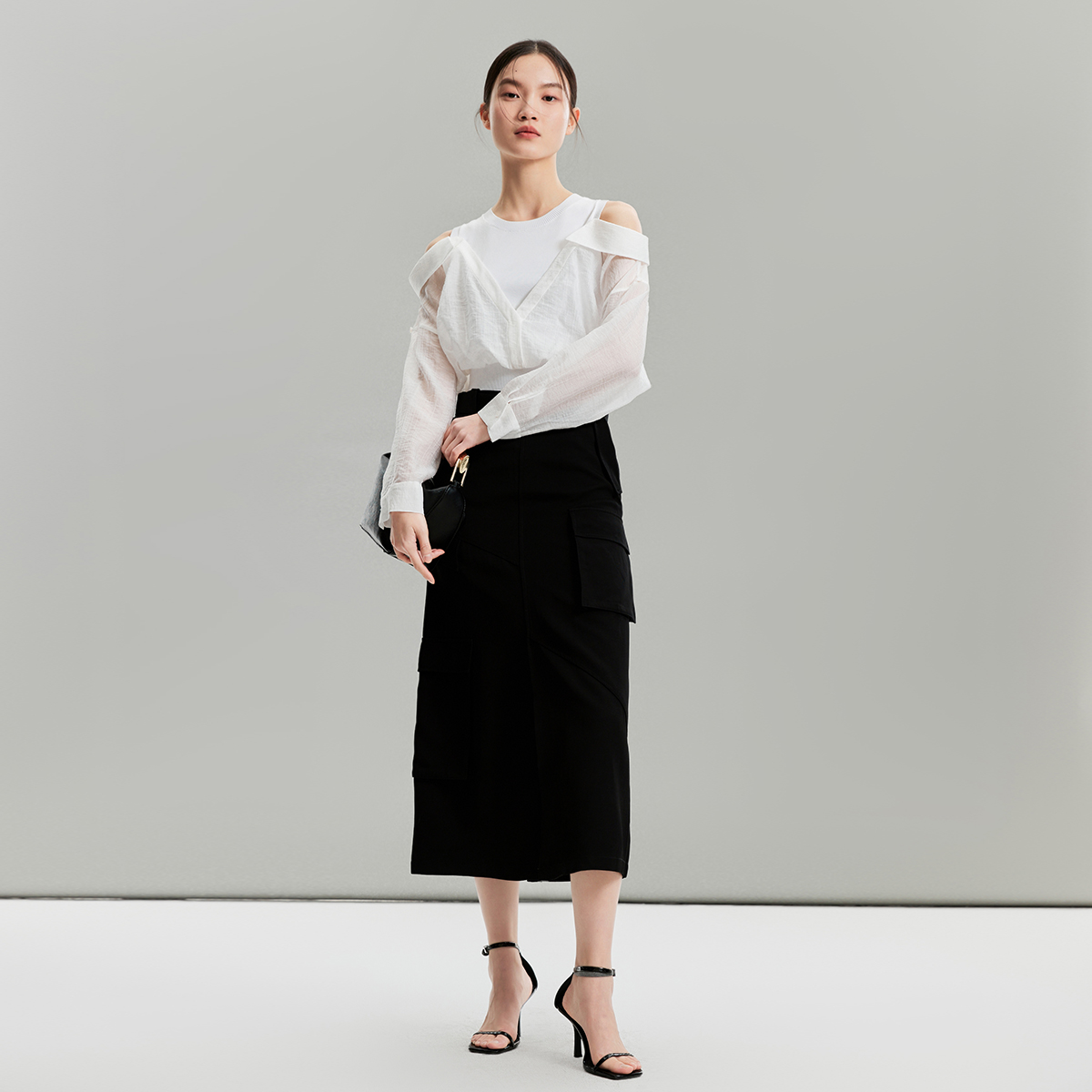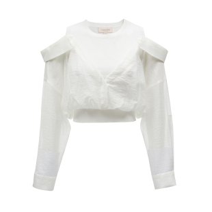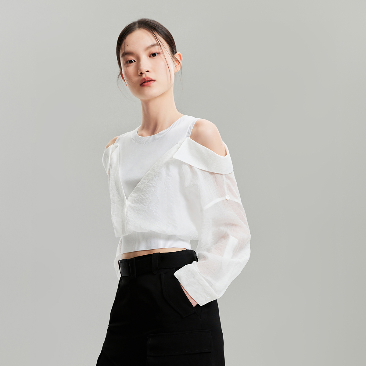 商场同款 新款 假两件露肩莱赛尔上衣 Moda奥莱上衣女2025夏季 Vero