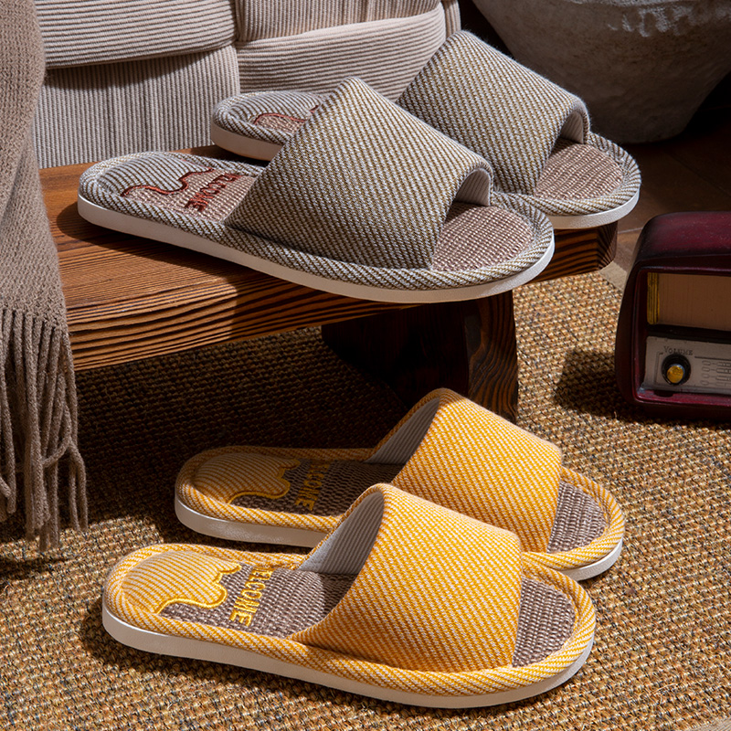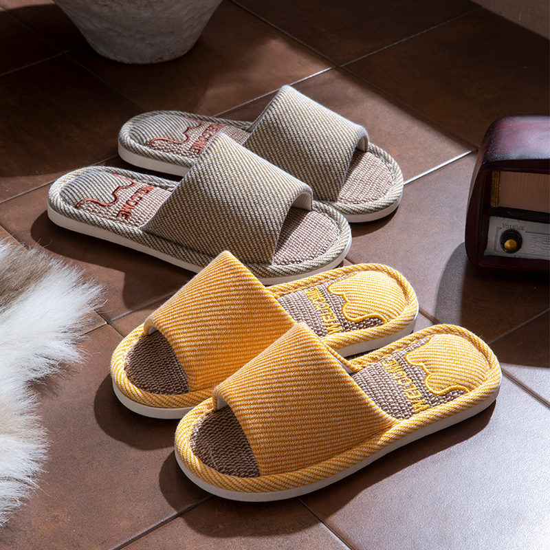 夏季 女士2025新款 居家室内地板透气静音吸汗情侣家用 亚麻拖鞋 四季