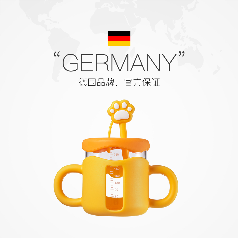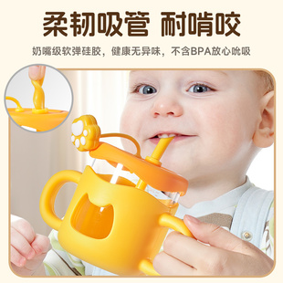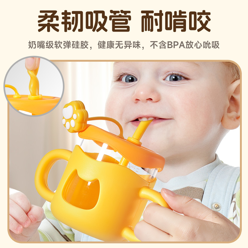 玻璃儿童吸管带刻度牛奶杯3岁以上微波炉可加热奶水杯子 自营