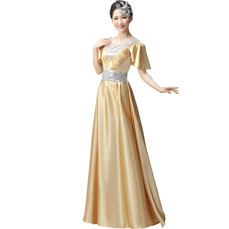 高端中国风长款 大型合唱团舞台走秀演出服夏 礼服白色雪纺宴会晚装